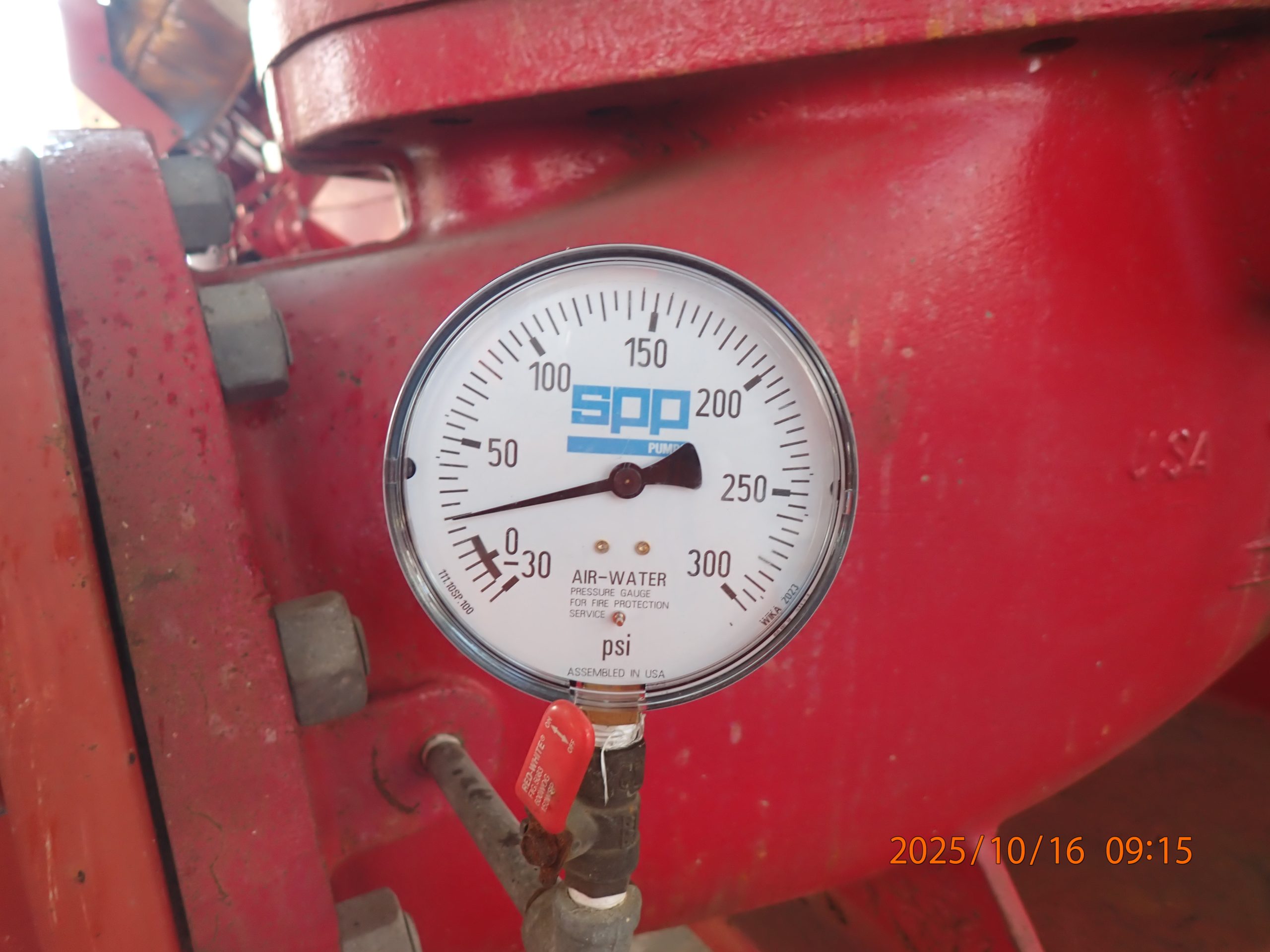 Hydraulic performance results demonstrated that the pump achieved the required operational benchmarks. The measured flow rate reached 3000 GPM, attaining 100% of its rated capacity, which verifies optimal impeller efficiency and unobstructed water passage. The discharge pressure was recorded at 156 psi, corresponding to 97% of the expected rated pressure. While slightly below maximum specification, this value remains within acceptable performance tolerance for operational readiness. Overall, the performance test confirms that the Aurora L fire pump is functioning efficiently and remains suitable for active service.