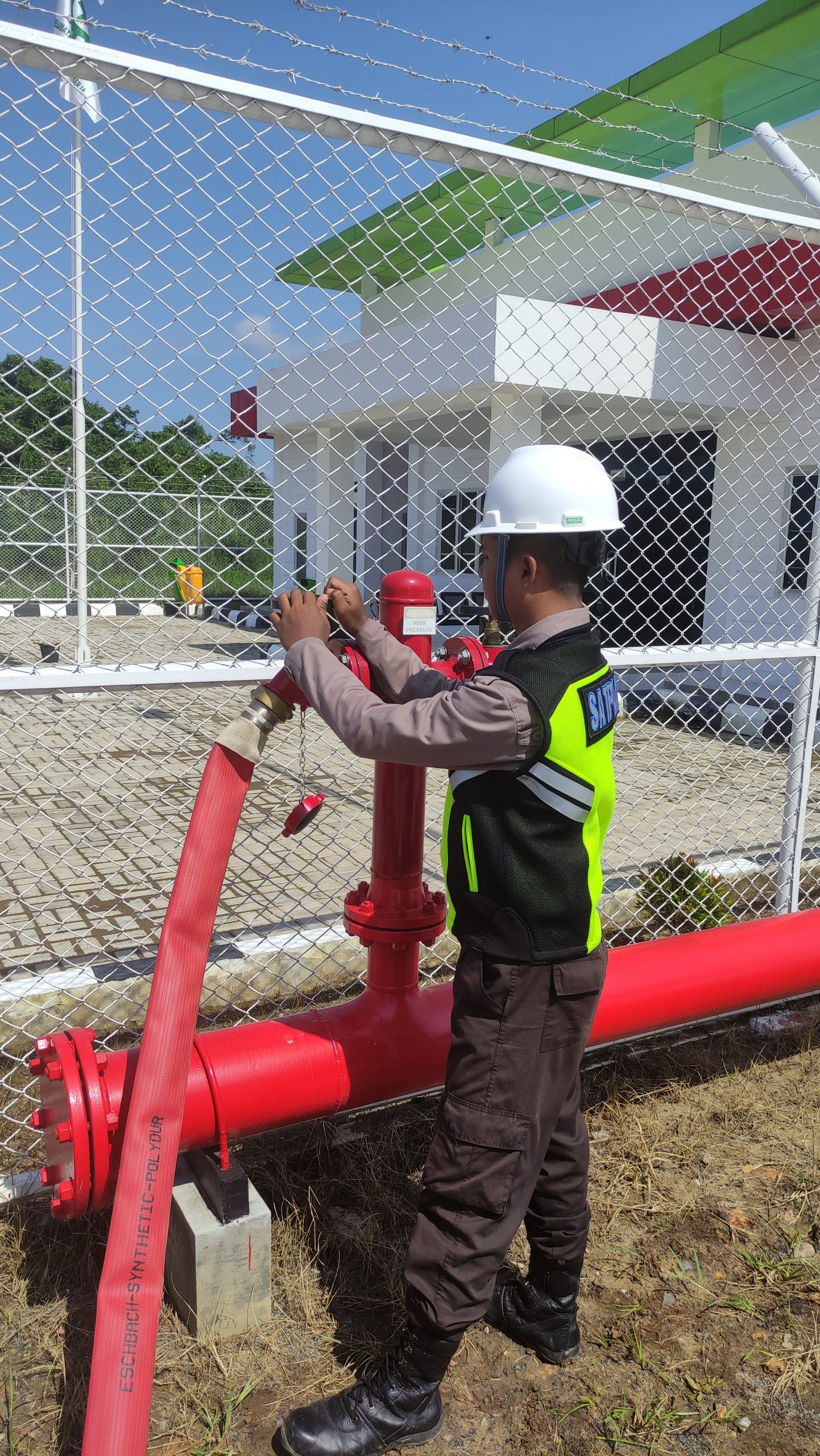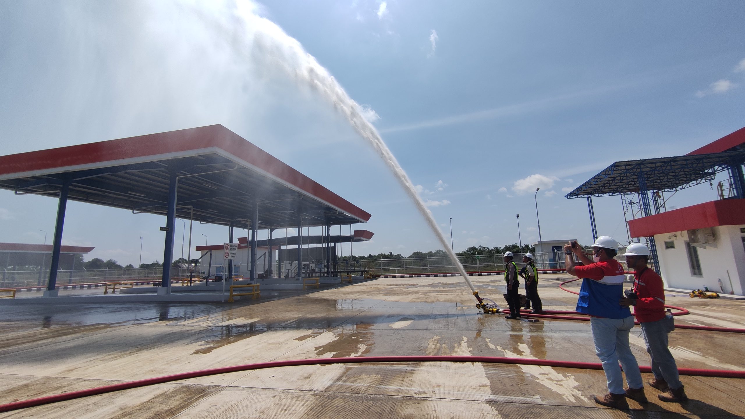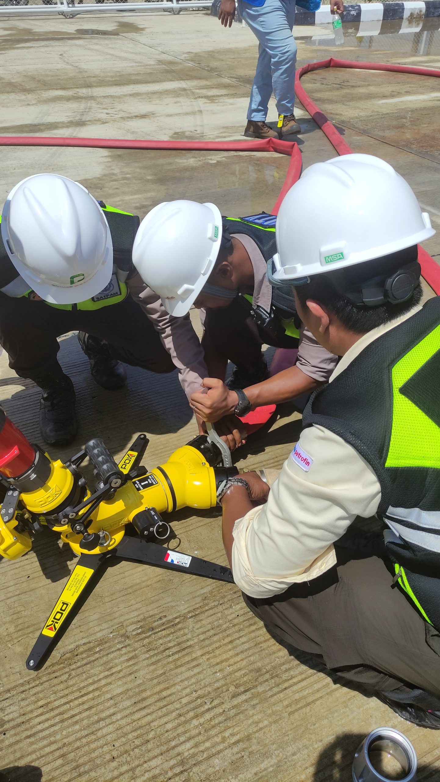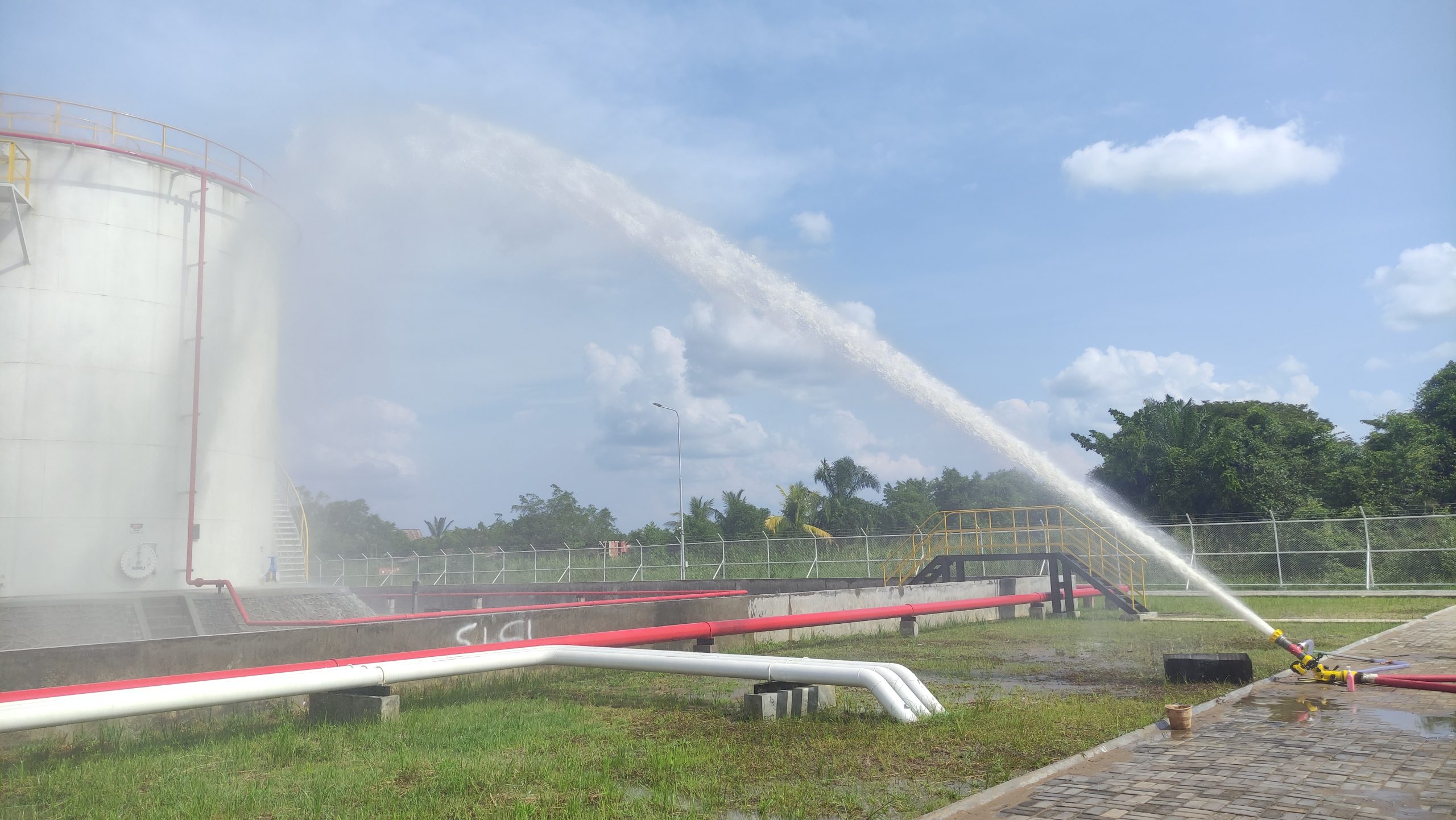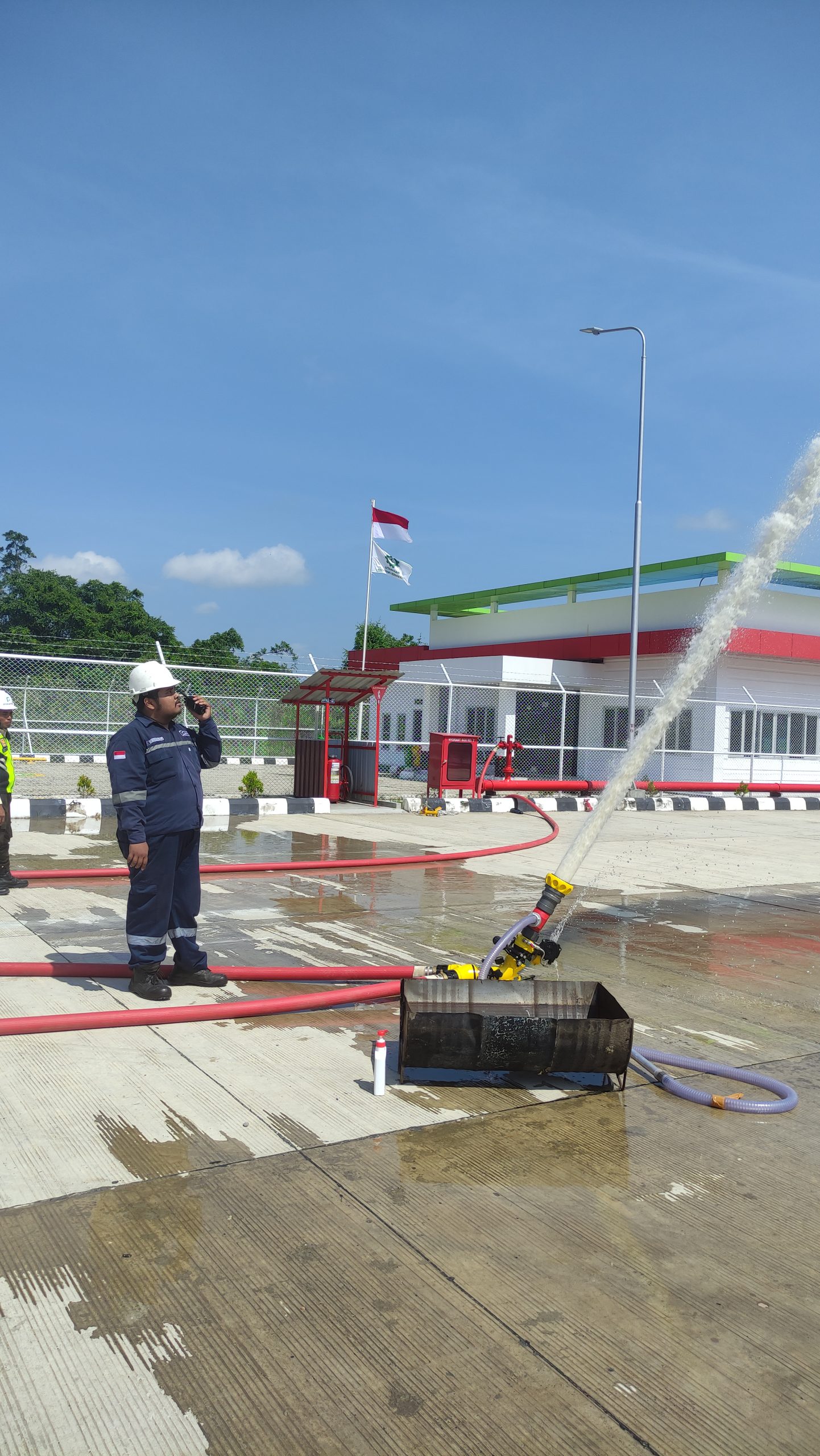 Kami melakukan commisioning test dan memberikan training operasional untuk mengoperasikan Fire Monitor dengan Foam Diffucer yang sudah kami supply